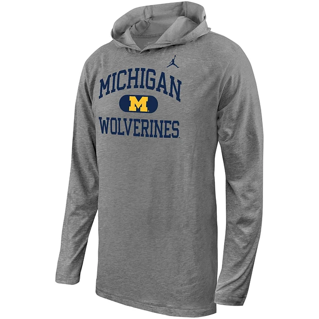 Youth Jordan Brand Gray Michigan Wolverines Stacked Logo Hoodie Long Sleeve T-Shirt