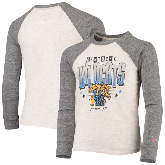 Youth League Collegiate Wear Heathered Gray Kentucky Wildcats Baseball Tri-Blend Raglan Long Sleeve T-Shirt