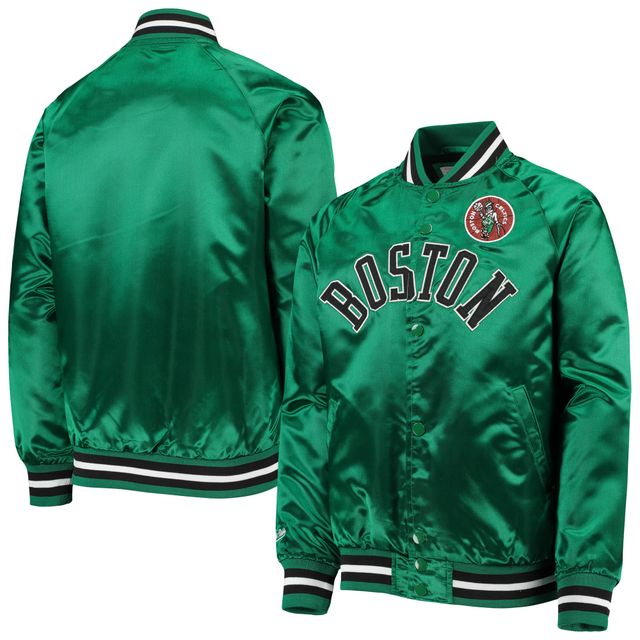 Youth Mitchell & Ness Kelly Green Boston Celtics Hardwood Classics Satin Raglan Full-Snap Jacket