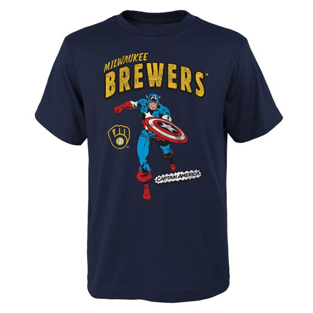 Youth Navy Milwaukee Brewers Team Captain America Marvel T-Shirt