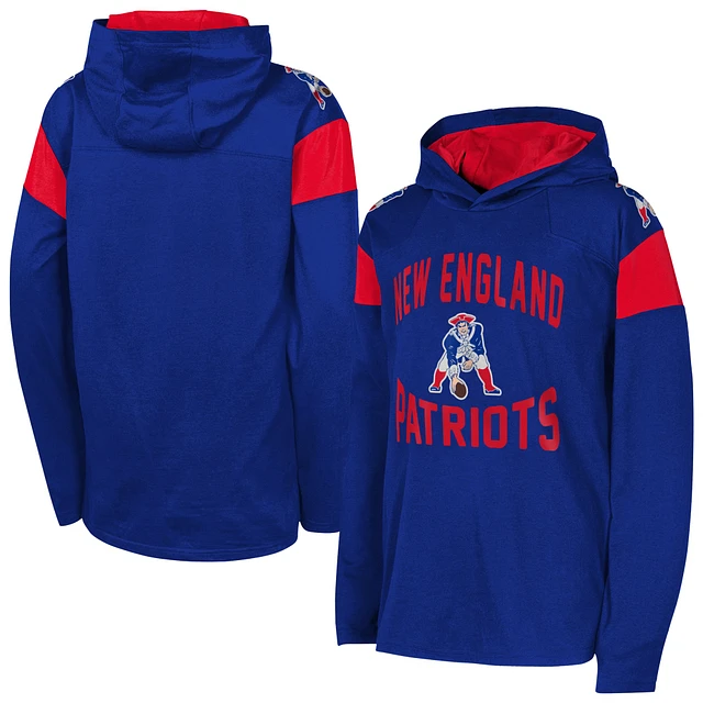 Youth Navy New England Patriots The Champ is Here Retro Long Sleeve Hoodie T-Shirt