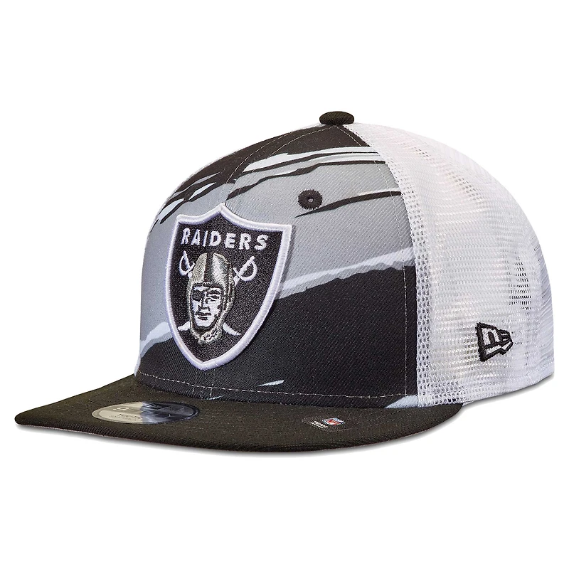 Add a striking spin to your child's Las Vegas Raiders outfits with this 9FIFTY Trucker hat from New Era. It features the Las Vegas Raiders logo in raised embroidery to showcase their unwavering fandom. The breathable mesh panels bring freshness to every wear while the snapback closure makes adjusting quick and easy.