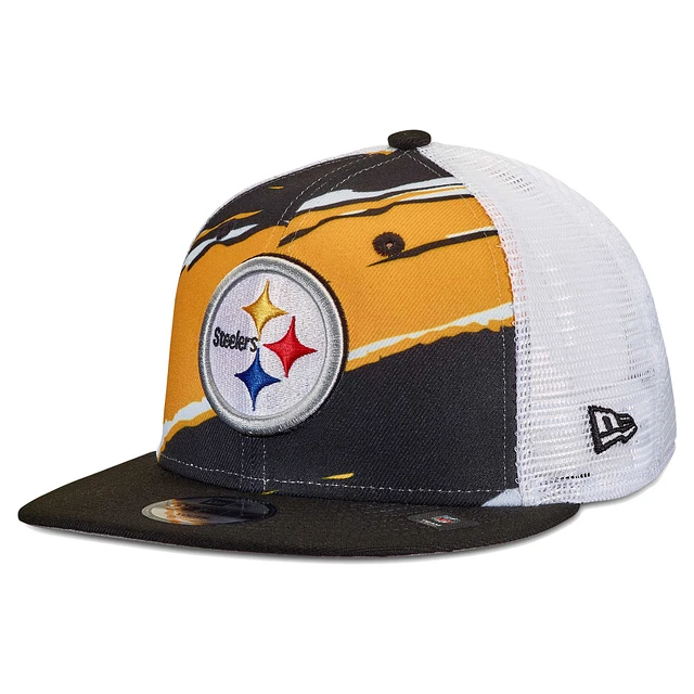 Youth New Era Black Pittsburgh Steelers Tear 9FIFTY Trucker Snapback Hat