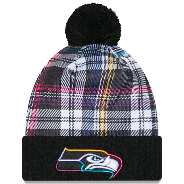 Youth New Era Black Seattle Seahawks 2024 NFL Crucial Catch Plaid Cuffed Pom Knit Hat