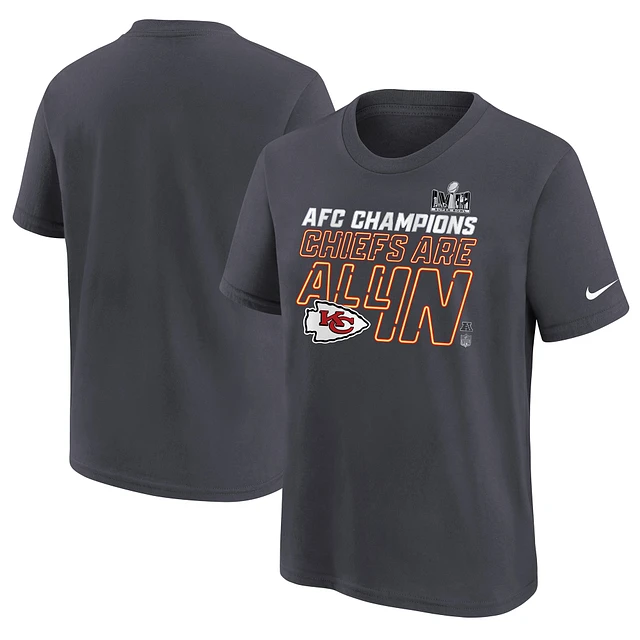 Youth Nike Anthracite Kansas City Chiefs 2023 AFC Champions Locker Room Trophy Collection T-Shirt