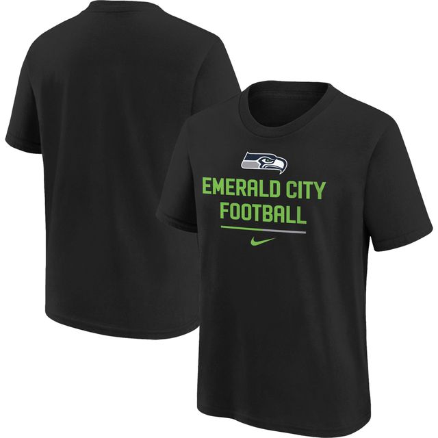 Youth Nike Black Seattle Seahawks Emerald City Football Slogan - T-Shirt