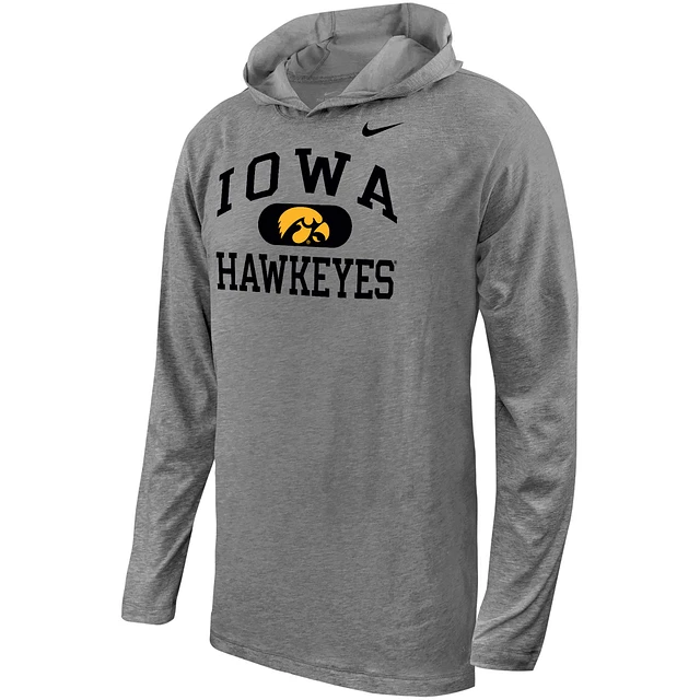 Youth Nike Gray Iowa Hawkeyes Stacked Logo Hoodie Long Sleeve T-Shirt
