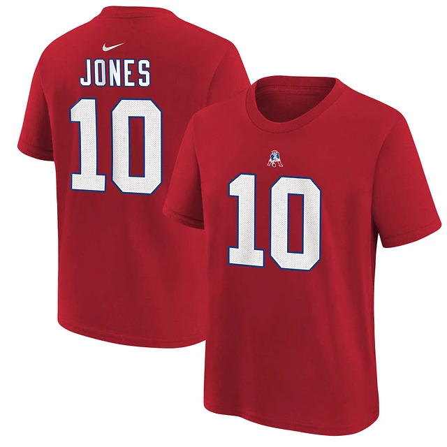 Youth Nike Mac Jones Red New England Patriots Player Name & Number T-Shirt