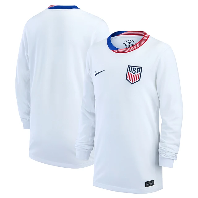Youth Nike White USMNT 2024 Home Replica Long Sleeve Jersey