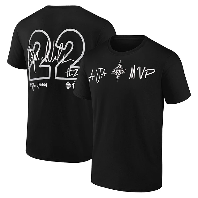 Youth round21 A'ja Wilson Black Las Vegas Aces Player Signature Name & Number T-Shirt