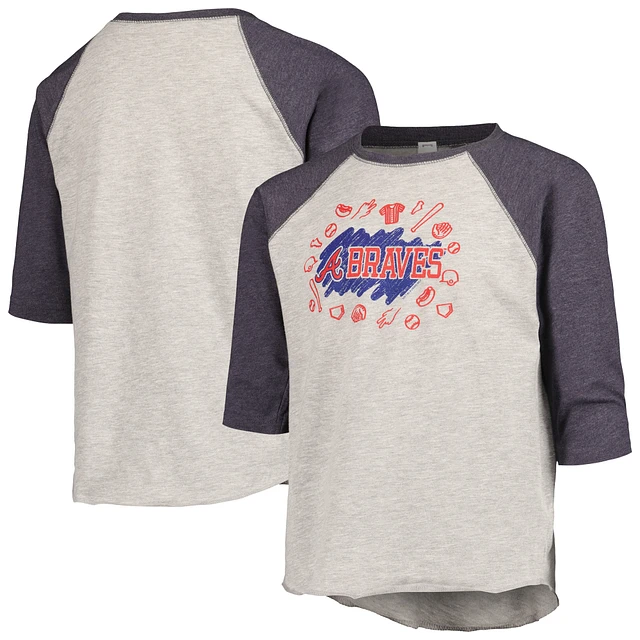 Youth Soft as a Grape Heather Gray Atlanta Braves Raglan 3/4 Sleeve T-Shirt