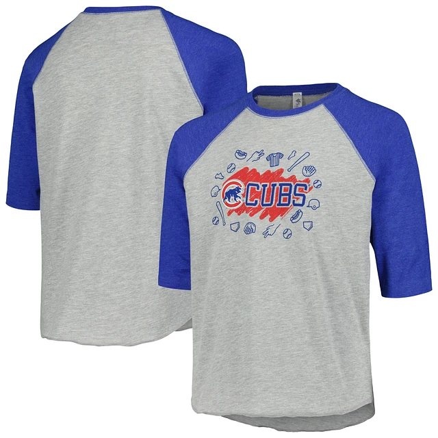 Youth Soft as a Grape Heather Gray Chicago Cubs Raglan 3/4 Sleeve T-Shirt