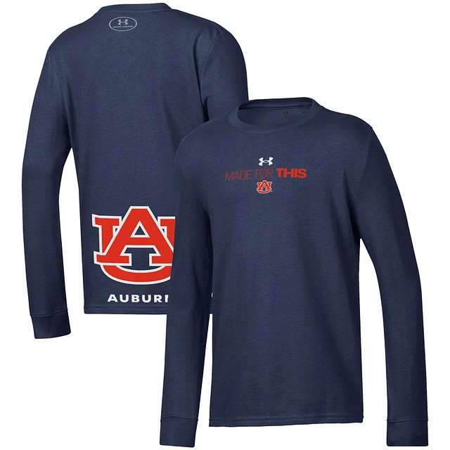 Youth Under Armour Navy Auburn Tigers 2024 On-Court Bench Unity Performance Long Sleeve T-Shirt