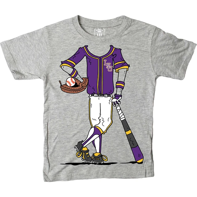 Youth Wes & Willy Gray LSU Tigers Baseball Player T-Shirt