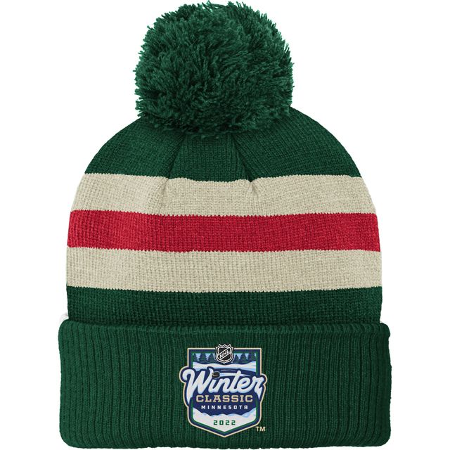 Youth White Minnesota Wild 2022 Winter Classic Team Logo - Cuffed Knit Hat with Pom