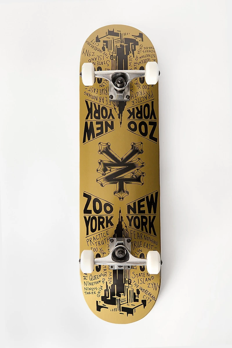 Pre-assembled and ready to rideWidth: 8"Silver trucksWhite wheelsMirrored New York / Zoo York patternImported by Zoo YorkStyle #4650-19072659