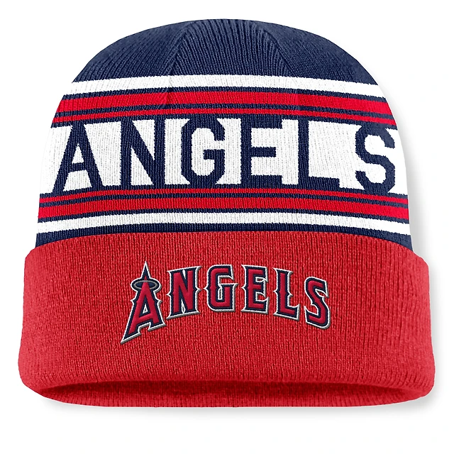 Men's Fanatics Red Los Angeles Angels Fundamental Team Stripe Cuffed Knit Hat
