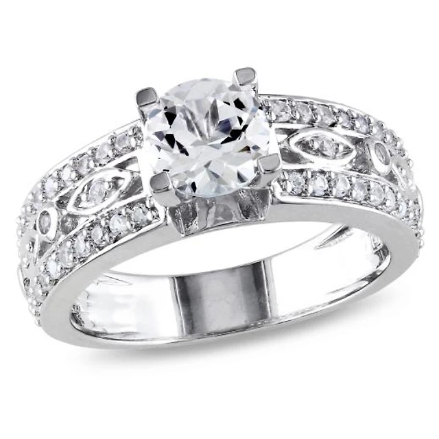 Julianna B Sterling Silver Aquamarine & White Topaz Ring