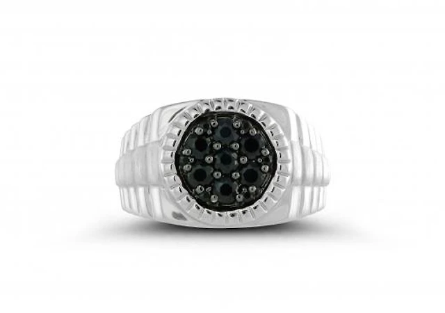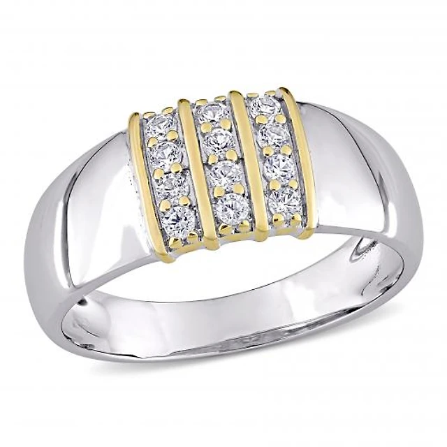 Julianna B 10K Yellow Gold and Sterling Silver Sapphire Men's Three Row Ring