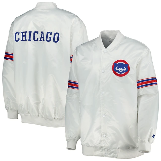 Men's Starter White Chicago Cubss Power Forward Satin Full-Snap Varsity Jacket